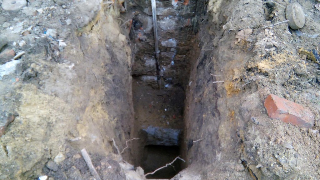 The next type of research work is more laborious, but it will provide more information. Near the foundations, you need to dig at least two pits. The pit is an ordinary pit about 1 meter long and up to the base of the foundation. As for the width, it should allow it to work normally, and the angle of the slope is done so that the earth does not collapse (for this purpose, it is better to strengthen the pit wall with boards).