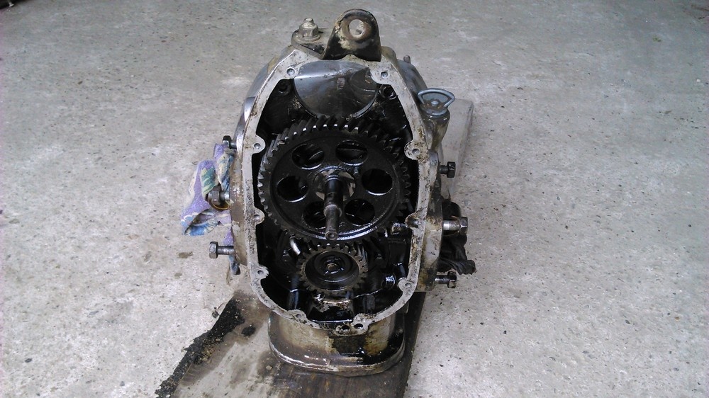I installed the pistons and cylinders, the engine was fixed on the motorcycle frame. The iron bushings on the engine mounting studs should be on the left. I started to put the box, it did not climb at first. After the first clicks on the kickstarter, the clutch discs clicked, the gearbox shaft went into both discs and the gearbox fell into place. And dances began with a tambourine to start it.