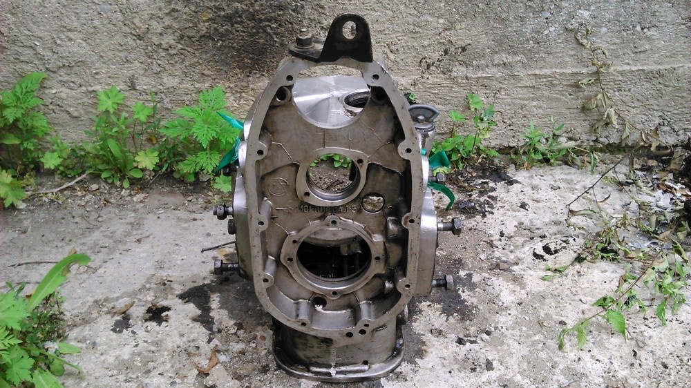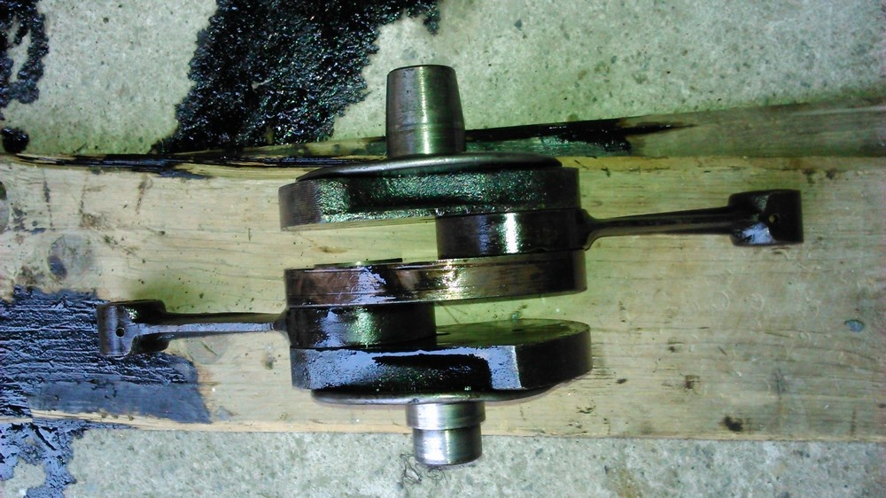 Then, in order to pull the crankshaft out of the engine, I took it by two connecting rods and gave it a position in which the connecting rods were at bottom dead center, then twisted it a little inside, pulled it out through the back cover, and put it in place in the reverse order.